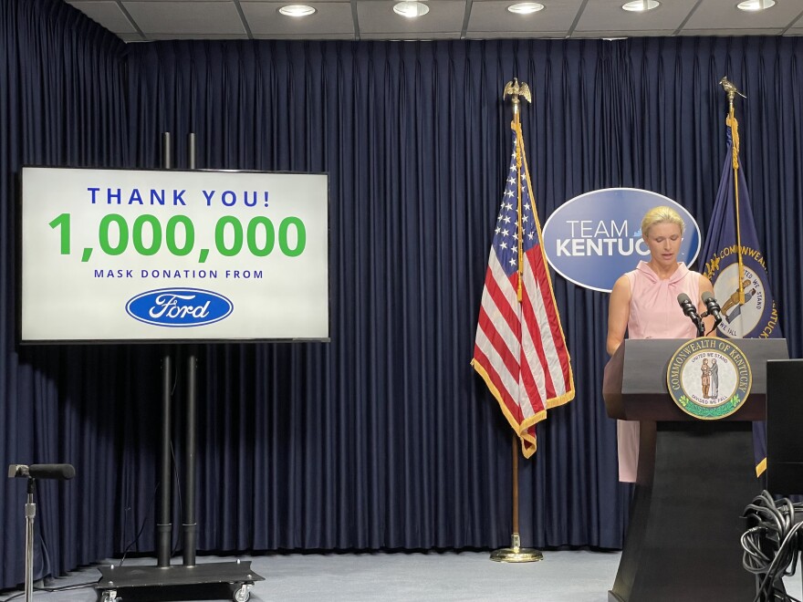 Kentucky First Lady Britainy Beshear announced that Ford Motor Company has donated another 1 million masks to help ensure that the state's schoolchildren have access to face coverings.