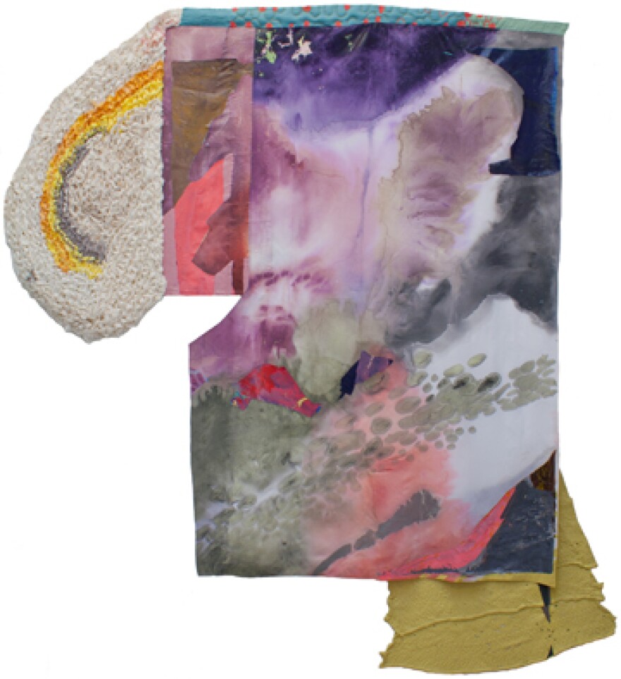 Inspired by a rich array of historical textiles (drapery to quilt), these complex multi-part constructions are encoded by traditional handicraft to contrast our culture’s rampant media consumption with the redemptive nuance of slow work wrought by hand. Saturated with vibrant color, the luminous materiality activates the senses and counters passive visual skimming. Works range from delicate illusions to layered constructions to architectural interventions. Mixed media includes oil and acrylic paint, vintage clothing, aluminum screens, wool, silk, plastic, thread, vinyl, burlap, rug-hold, glass, recycled objects, and found fabrics. Whether painting, tapestry or construct, these works interweave sensory pleasure with repetitive process to invoke introspection and reflection.