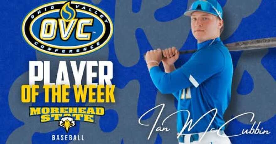 Ian McCubbin, jugador de Universidad Estatal de Morehead, fue elegido Jugador de la Semana por la Conferencia del Valle de Ohio por su buen trabajo en la primera serie de la temporada.